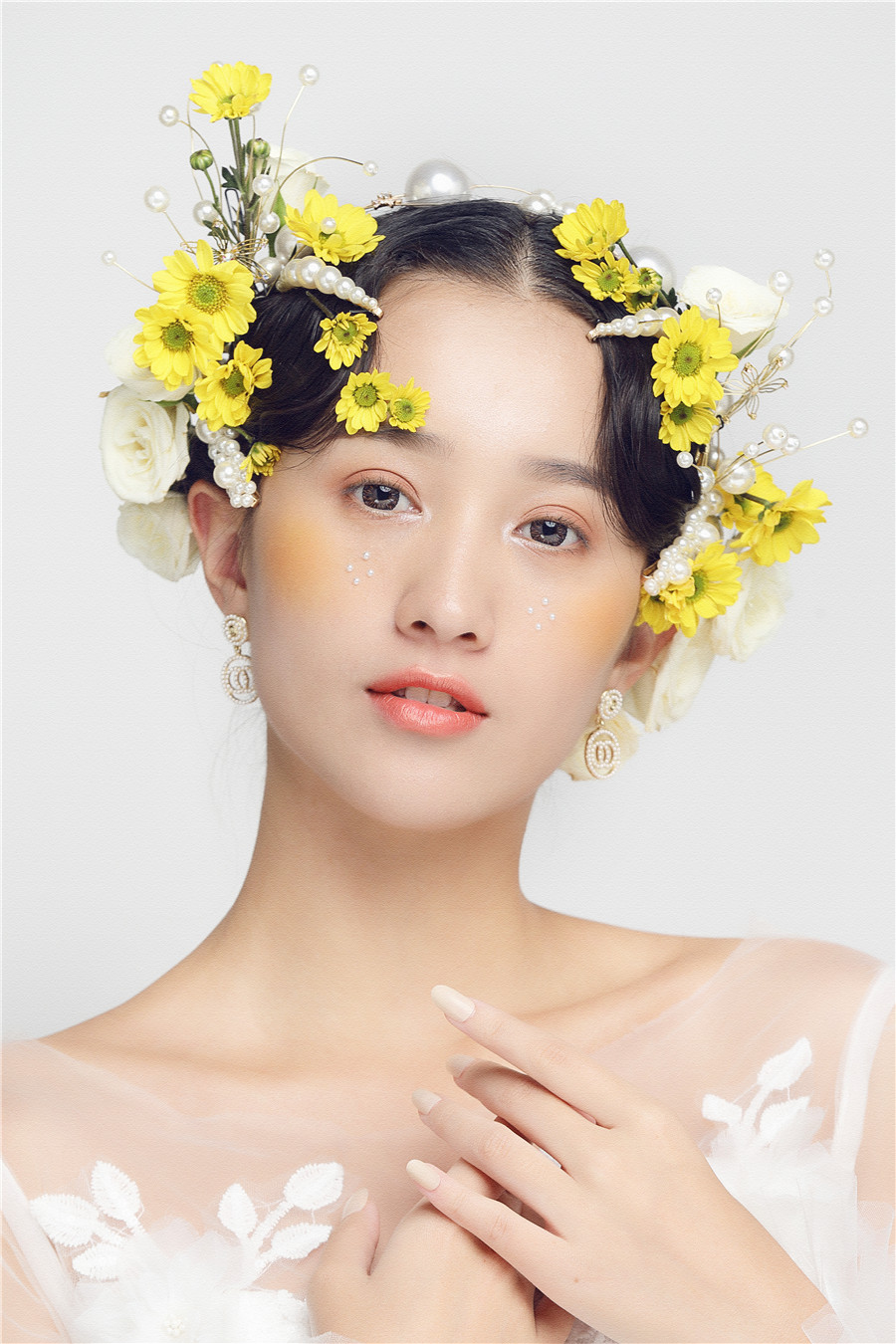 麗竹學(xué)校彩妝作品---森系鮮花造型:美得淡雅脫俗的花朵,縈繞在靈動(dòng)的發(fā)絲上,花開(kāi)半夏如詩(shī)如畫(huà),驚艷了時(shí)光隧道,造就了一人一花一世界。