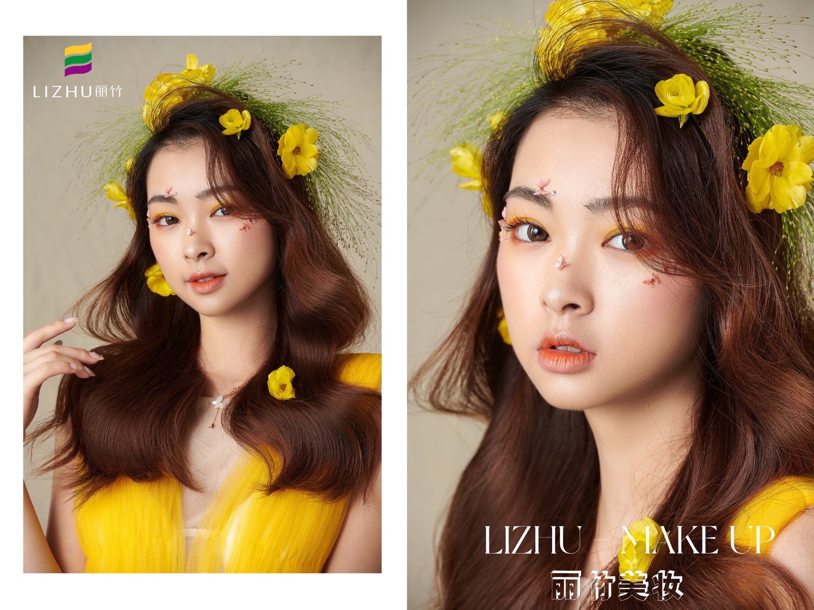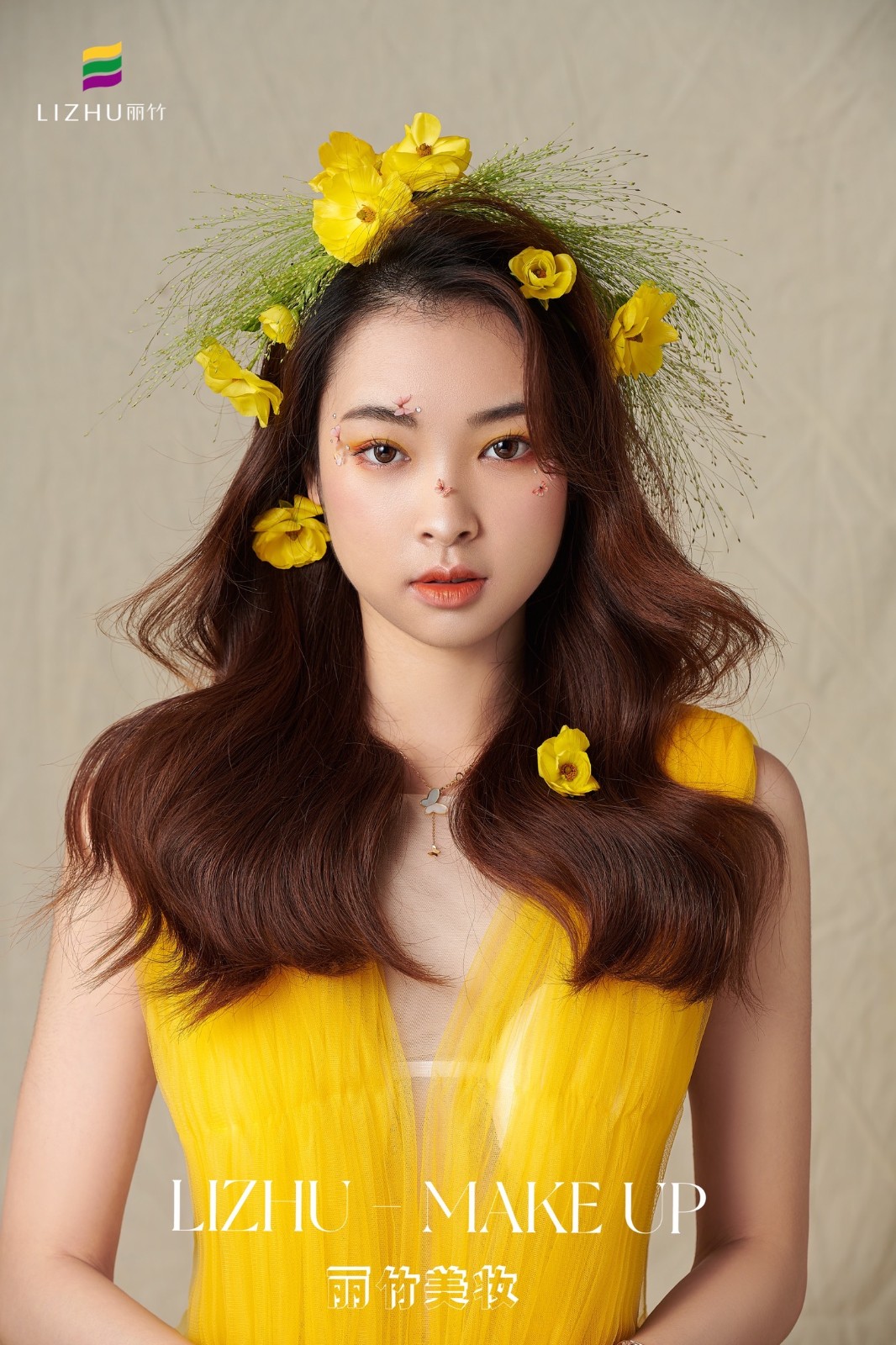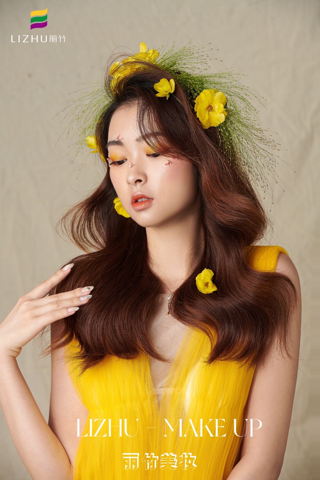 麗竹化妝學(xué)校作品---輕氧花漾披發(fā)造型:清新自然嫩膚柔細,發(fā)絲宛若三月春風(fēng),繁華似錦帶來(lái)神秘曼妙,清透靈動(dòng)述說(shuō)少女心事。