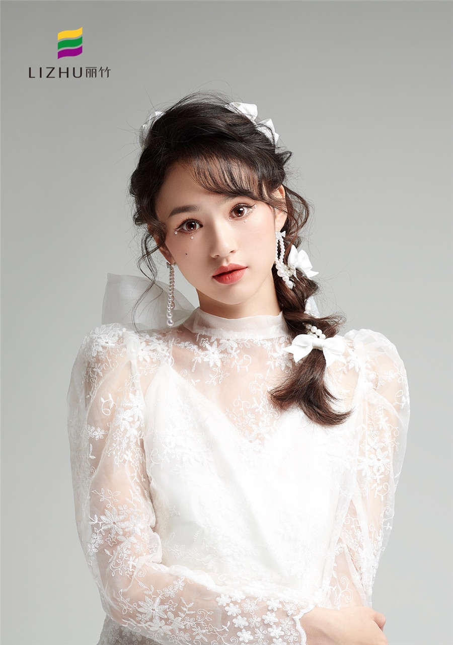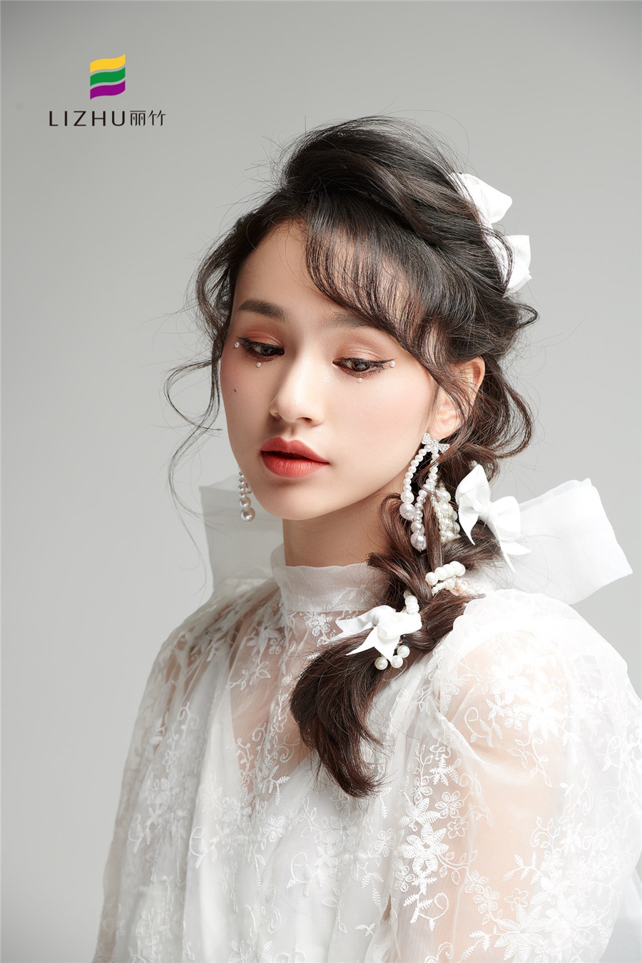 廣西化妝培訓學(xué)校(麗竹化妝學(xué)校)---甜美時(shí)尚新娘造型:簡(jiǎn)約的便面編發(fā),搭配優(yōu)雅的白色蝴蝶結點(diǎn)綴。素雅動(dòng)人,甜美優(yōu)雅,無(wú)須濃墨重彩,即可打造氣質(zhì)恬靜新娘。