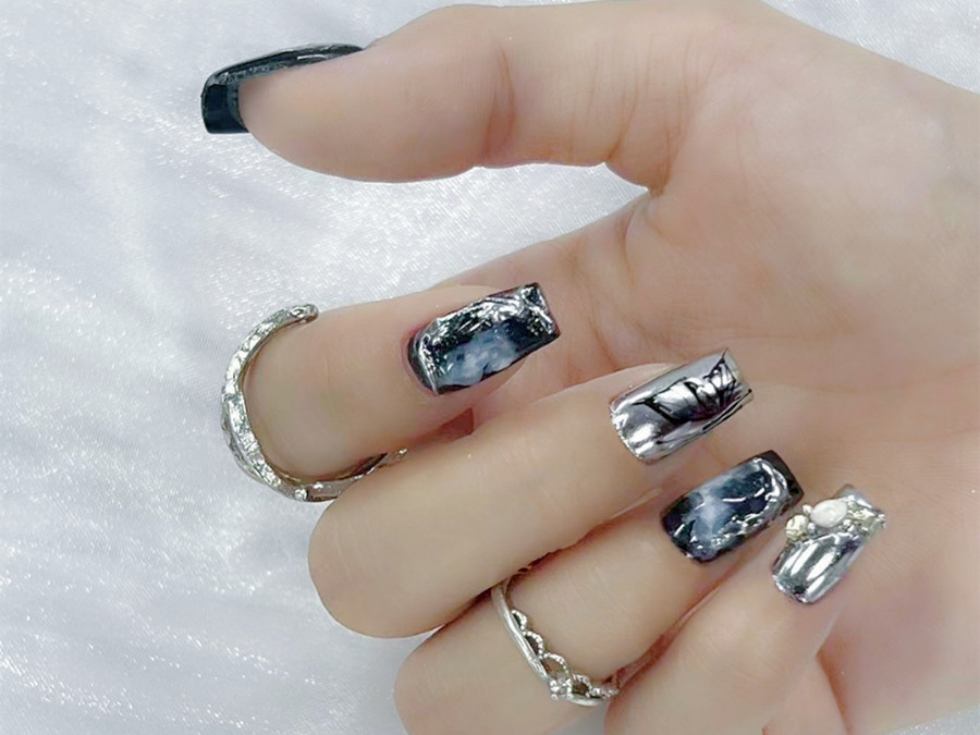 黑色系ins風(fēng)美甲,廣西美甲名??钍浇榻B